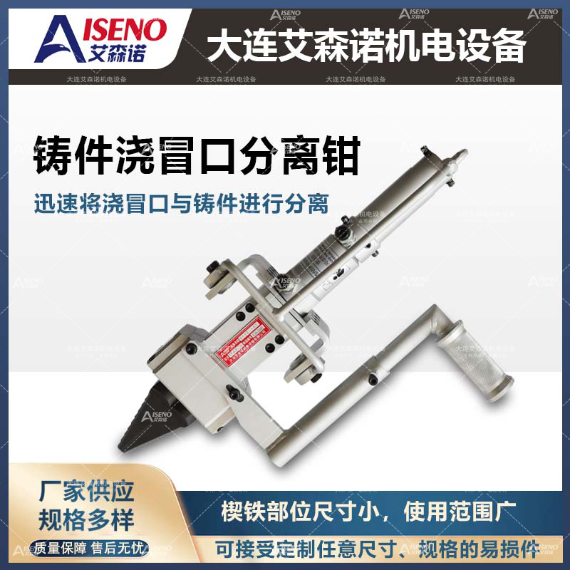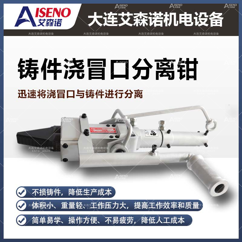 鑄件澆冒口分離工具,在不損傷制品的情況下將鑄件澆冒口、澆道等多余部分分離,便于回爐再利用。其具有體積小,重量輕、工作壓力大、破壞力強(qiáng)等優(yōu)點(diǎn)。世界著名汽車、機(jī)械制造廠家都在使用艾森諾產(chǎn)品。艾森諾產(chǎn)品機(jī)型種類豐富,大致分為:澆冒口分離器、澆冒口氣動(dòng)沖擊錘,擊斷器及液壓泵站等,產(chǎn)品適用范圍廣,用戶可以根據(jù)鑄件的材質(zhì)、形狀、大小來(lái)選擇適合自己產(chǎn)品的分離工具。