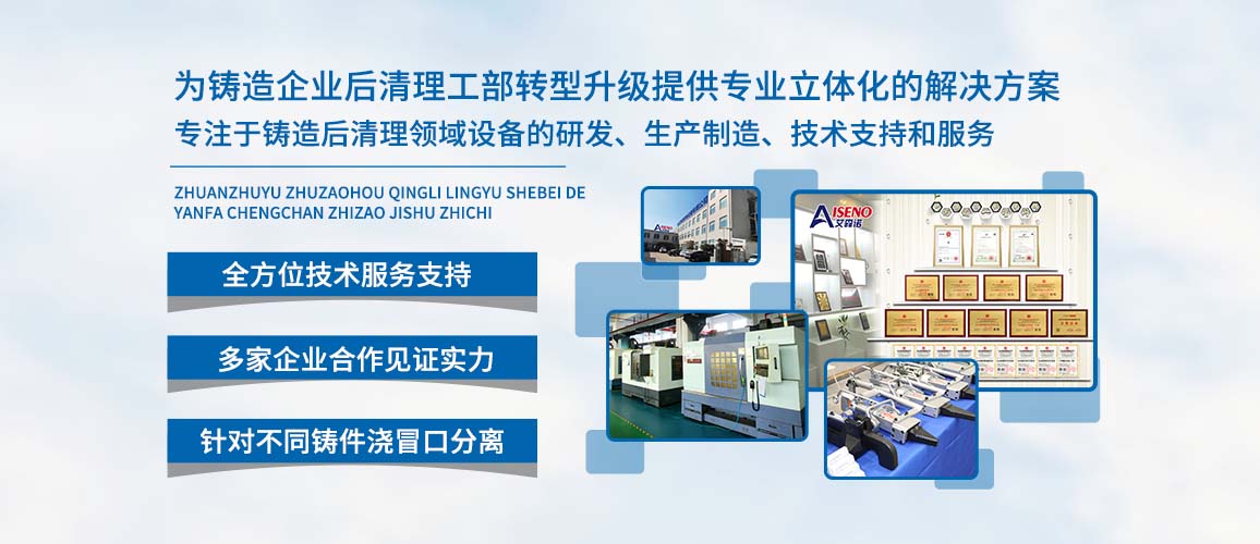 大連艾森諾機(jī)電設(shè)備有限公司(Aiseno),專注于鑄造后清理領(lǐng)域設(shè)備的研發(fā)、生產(chǎn)制造、技術(shù)支持和服務(wù)。致力于成為鑄造行業(yè)的好幫手,為鑄造企業(yè)后清理工部轉(zhuǎn)型升級(jí)提供專業(yè)立體化的解決方案。