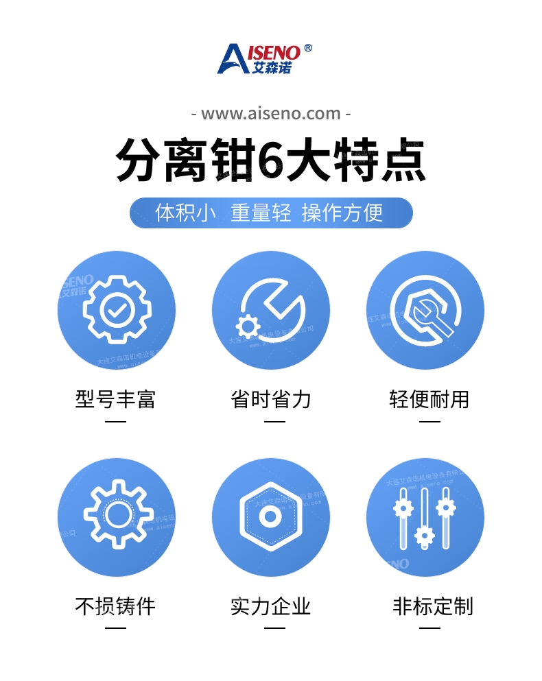 總之,大連艾森機(jī)電設(shè)備有限公司的鑄件澆冒口分離鉗以其體積小、重量輕、工作壓力大、高效分離、易操作、穩(wěn)定性高、維護(hù)成本低等眾多優(yōu)勢(shì),成為了工業(yè)生產(chǎn)中的得力助手。它為企業(yè)提高工作效率、降低成本、創(chuàng)造更多經(jīng)濟(jì)效益提供了可靠的解決方案。